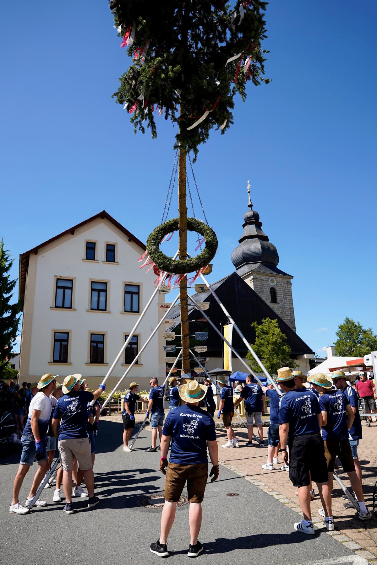 Samstag: 14:00 Öffnung des Dorfmuseums "10 Jahre Dorfmuseum" • 15:00 Festzug zum Baum aufstellen mit Begleitung der RÖBERSDORFER BLASKAPELLE mit anschl. Festbetrieb • 17:00 Einlagespiel der AH-Falken/AH-Reundorf • 19:00 Livemusik mit Duo HITS+MORE, Barbetrieb •