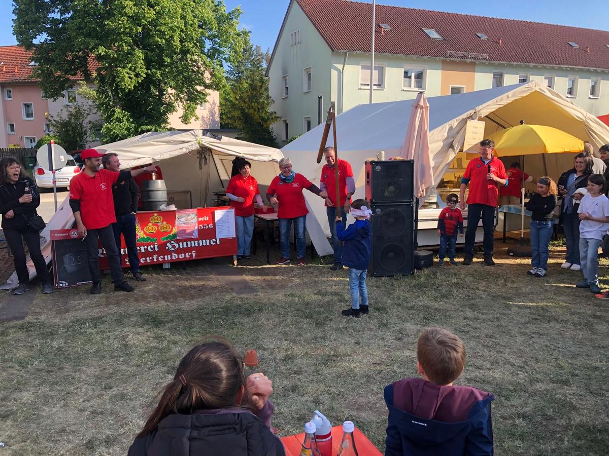 Samstag: 14:30 Aufstellen des Kirchweihbaums mit der Blaskapelle DIE VIERETHER MAAFISCHER • Steaks & Bratwürste der Metzgerei Eichhorn, Hummelbier vom Fass, Kaffee & Kuchen • 15:30 Knax-Hüpfburg • ab 20:00 Musik im Festzelt •